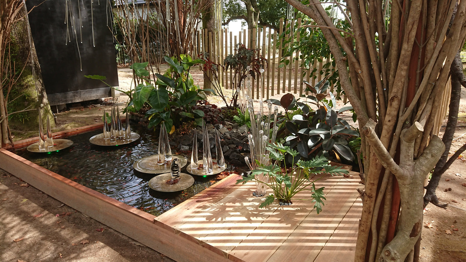 施主様の要望で「里山ガーデン」を作りました。池が玄関脇と主庭にあり全て雨水のみを循環させるエコな池です。池同士をつなぐ小川にはトンボや小魚が遊ぶようなビオトープにデザイン。流れの途中には小さな水田もあり、癒される庭に仕上がりました。遊ぶ観点では、デッキ上の足湯やガーデン囲炉裏お客さんが来ても飽きさせず庭で青んでいただける点も美点と思います。 プロジェクトの竣工年/制作年:2010 プロジェクトの費用:500万円以上1,000万円未満
